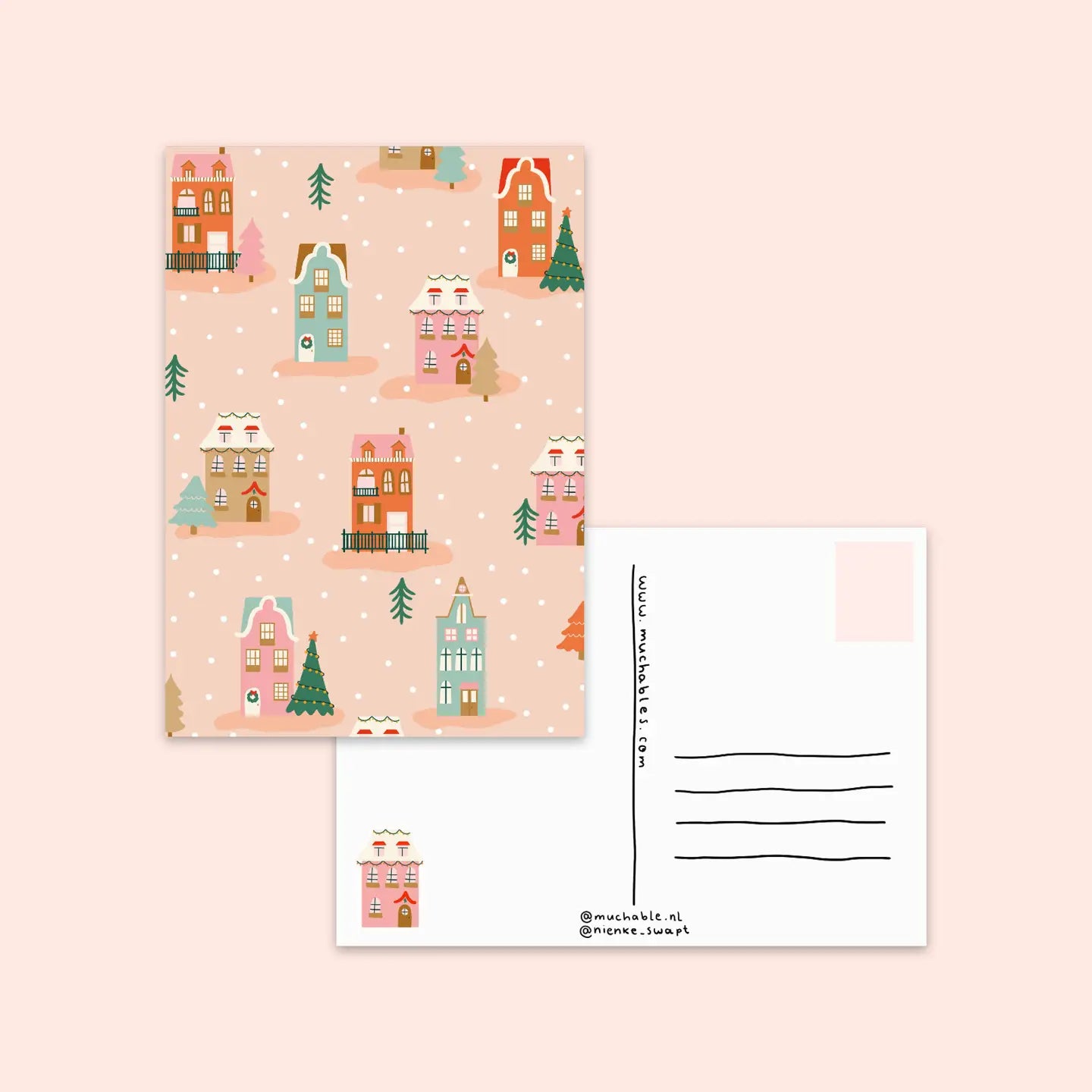 This card is part of the Muchable's Christmas collection: a cheerful and colorful collection. All cards are A6 format (10.5 x 14.8 cm) and printed on 330 grams matte paper. The cards are printed on both sides and there is also a nice mini illustration on the back of the cards.