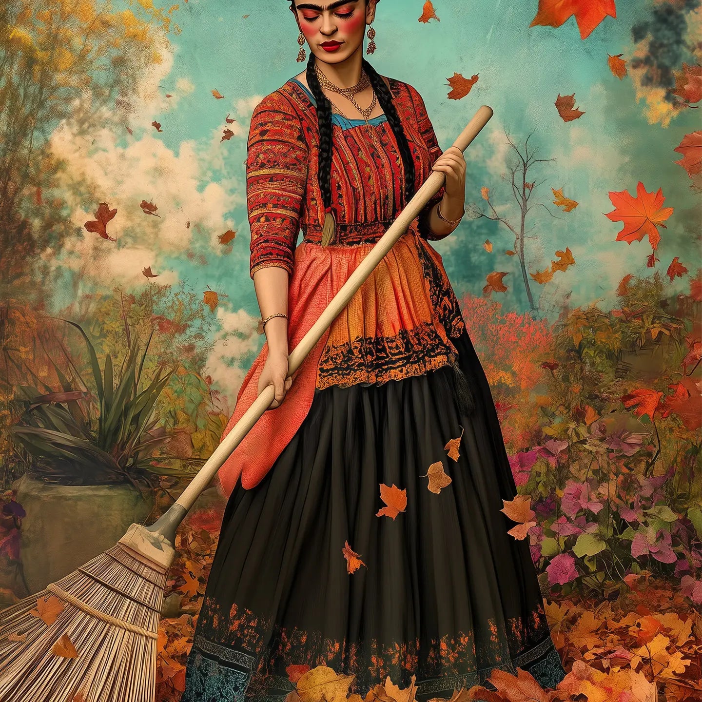 Frida Raking the Leaves