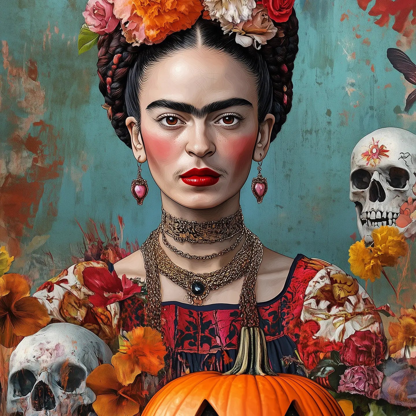 Frida with Jack-O-Lantern