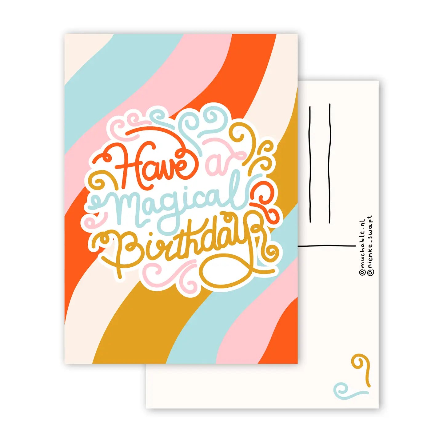 This card is part of the muchable x nienke_swapt collection: a cheerful and colorful collection consisting of several products! All postcards are A6 format (10.5 x 14.8 cm) and printed on 330 gsm matte paper. The cards are printed on both sides with a nice mini illustration on the back of the cards.