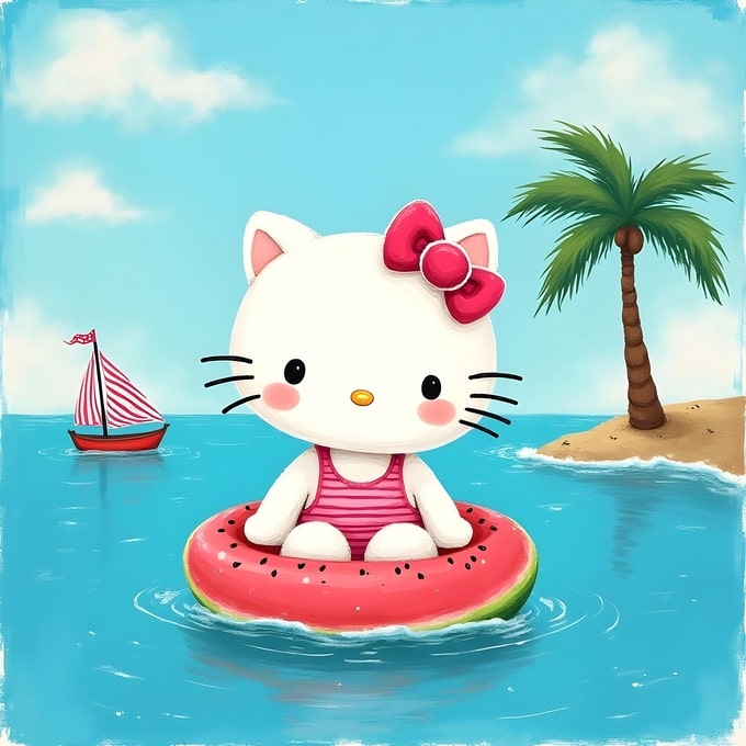 Hello Kitty postcard by Artist AnnieKa 5x5