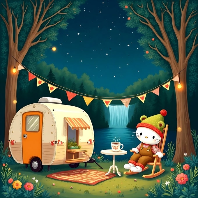 Hello Kitty postcard by Artist AnnieKa 5x5
