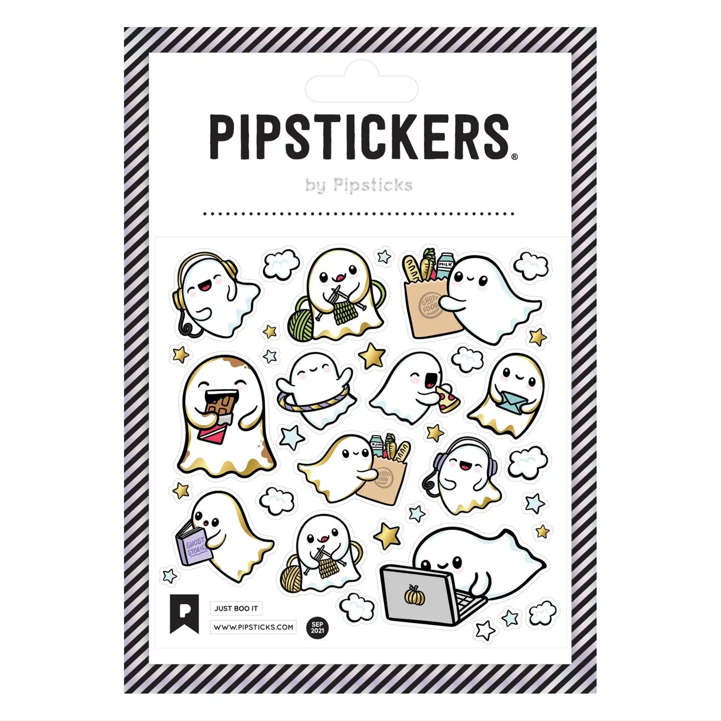 These unique PVC designs with holographic gold foil accents come on a clear backing and cannot be found anywhere else. Includes one 4'' x 4'' sheet of Just Boo It PipStickers.